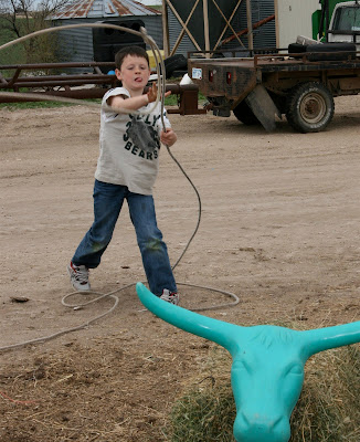 One more thing just to make a few of you jealous. Instead of having the traditional ham or turkey for Easter dinner, Debbie and Greg made bacon-wrapped sirloin on the grill. Greg even cut the steaks by hand. Of course, we had other Debbie goods such as freshly homemade bread (yes, it was still warm when we ate it), some sort of corn casserole, oven roasted new potatoes, Debbie's famous fruit salad, and strawberry cake with strawberry frosting and brownies for dessert. See what happens when the rest of you don't show up at Debbie's house for a holiday dinner - we get to have steak!